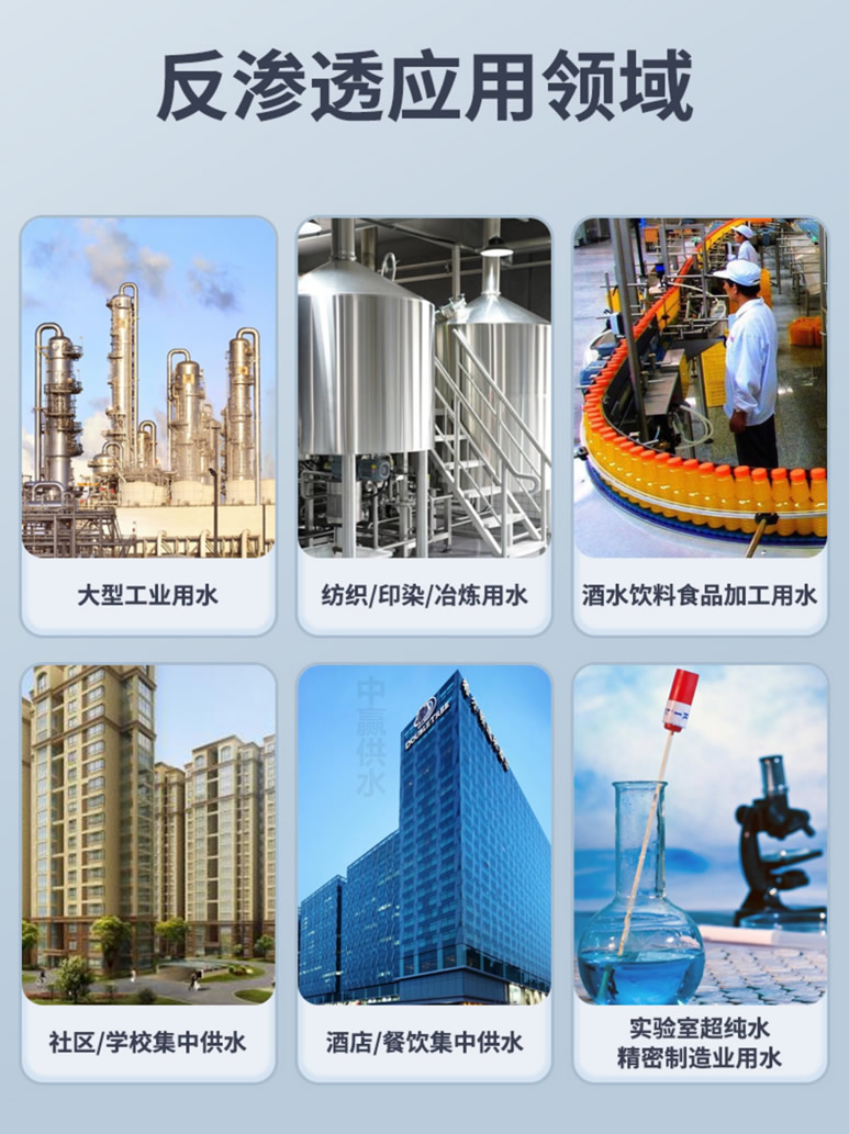 ?適用范圍廣?:適用于小區、工廠、實驗室等多種場合,用于海水淡化、苦咸水淡化、鍋爐用水軟化、廢水處理等領域?。
