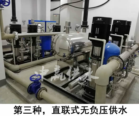 3、是采用無負(fù)壓的供水設(shè)備,直接從自來水管道加壓將水送至用戶家中。這種給水方式,沒有二次供水水箱,是目前為衛(wèi)生的一種給水方式。